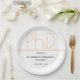 Papier-Teller für eine PhD-Graduiertenparty mit weißem, cremefarbenem, grauem Design. Dieser Artikel ist Teil einer Graduiertensammlung, die eine Einladung, Ankündigung von Fotos, Papierservietten, Platzkarten und vieles mehr enthält. Passen Sie diese Artikel an, fügen Sie sie Ihrem Warenkorb hinzu und feiern Sie diese große Leistung.