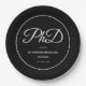 Papier Teller für eine PhD-Abiturparty mit schwarzem Hintergrund und weißer Schrift. PhD-Abschluss Black Graduation Party Paper Plate Holidayday Design | ©Melissa Patton - Designer