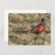 Das Phäasant (Phasianus colchicus) wird auch als Fasan oder Ringhals bezeichnet. Es ist ein bekannter Wildvogel. Sie wurden in Nordamerika eingeführt und haben sich etabliert und verbreitet. Das ist ein Foto eines männlichen Fasans im Herbstgras.