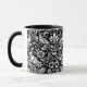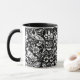 Tasse in einem William Morris, Jugendstil-Tapete-Design von Fasantien und Hasen Set zwischen Blätter, Weinreben und Blume - subtil strukturiert weiß auf schwarzem Hintergrund