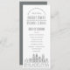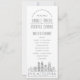Un programme de mariage décoré sur le thème de la skyline pour un mariage qui se déroule dans la belle ville de Philadelphie, Pennsylvanie. Cette carte de programme de mariage présente une illustration stylisée de l'horizon unique de la ville avec son nom en dessous. Il se repose sous vos informations de jour de mariage dans un style ouvert assorti. À l'envers, il y a une couleur gris nickel douce avec plus de détails mariages en texte blanc pour compléter l'avant. Une façon élégante d'accueillir les gens de l'extérieur dans votre ville, tout en leur donnant des informations utiles sur votre série d'événements de cérémonie mariages.