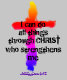 Chaque fois que vous comptez sur Jésus pour vous aider à vous maintenir lorsque la vie vous est accablante, lorsque les choses ne vont pas comme vous le souhaiteriez, lorsque des actes d’altruisme vous laissent en suspens, et quand il semble que votre fidélité au Royaume passe inaperçue, alors vous pouvez en toute confiance réclamer Philippiens 4:13.
