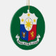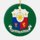 Dieser Weihnachtsschmuck ist auf der einen Seite mit der Wappenrüstung der Philippinen und auf der anderen mit dem Weihnachtsmann und den Worten "Frohe Weihnachten" dekoriert.