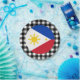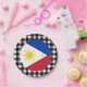 Teller: Rustikale Philippinen Party Teller mit philippinischer Flagge umgeben von schwarz-weiß Büffel karierten Muster - Liebe mein Land, festliche Dekoration, nationale Patrioten / Sportfans