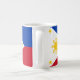 Bewundern Sie die lebendige Kultur und Geschichte der Philippinen mit dieser wunderschön gestalteten Keramik-Kaffee-Tasse unter der malerischen philippinischen Flagge. Die kühnen Farben Rot, Blau und Weiß, zusammen mit der goldenen Sonne und den Sternen, stellen den bleibenden Geist und das reiche Erbe der Nation dar. Egal ob Sie Ihren Morgenkaffee, Tee oder ein beliebtes Getränk genießen, diese Tasse bringt Ihnen eine Touch philippinischen Stolzes in den Alltag. Diese philippinische Fahne-Tasse ist ein ideales Geschenk für jeden, der eine Verbindung zu den Philippinen hat, oder als sinnvolle Ergänzung zu Ihrer eigenen Küchensammlung. Aus langlebiger Keramik gefertigt, ist es ideal für den täglichen Gebrauch oder als hochgeschätzter Sake, der das Erbe der Philippinen ehrt. Zeigen Sie es stolz auf einem Regal oder nutzen Sie es täglich, um Ihre philippinischen Wurzeln mit jedem Schluck zu feiern.