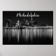 Das ist die wunderschöne Skyline der Stadt Philadelphia, die nachts vom Delaware River am Camden Ufer aufgenommen wurde. Die Architektur der Wolkenkratzer und Gebäude von Philly ist in diesem Schwarz-Weiß-Foto zu sehen. Im Mittelpunkt dieses Fotos steht die Innenstadt von Philadelphia. Die Lichter der Stadt reflektieren das Wasser.