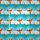 Ein faszinierendes Fantasiemuster zeigt einen Feuervogel aus Myth und Magie, der mit den Glanzfunken in den Himmel aufsteigt. Der Phoenixvogel ist aus der Asche seines Pyres geboren. Geboren in Flammen, ein Symbol der Hoffnung und Neuanfang.Lebendige Orange und Gold mit einer Touch Indigoblau auf Flügelspitzen über einem aquablauen Himmel und weiße Wolken