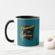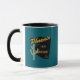 The coffee mug design saying "1881," "Phoenix" and "Valley of the Sun" is colored blue green. It makes it ideal for either coffee or tea in the mornings. It is microwave and dishwasher safe.