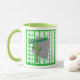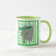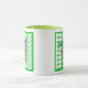 The coffee mug design saying "Phoenix" and "The Valley" is colored green. It makes it ideal for either coffee or tea in the mornings. It is microwave and dishwasher safe.