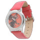Kinderuhr aus Edelstahl mit rotem Lederarmband
