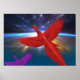 Mythische Phönix-Vögel fliegen hoch - so hoch, dass sie in den Weltraum aufsteigen. Original digitale Kunst von Yuichi Tanabe.