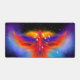 Phoenix flammé volant à travers l'espace sur un nuage de nébuleuse bleu et violet. La constellation de phoenix est constituée par le groupe étincelant d'étoiles qui couronne la tête de l'oiseau mythique. ♡ Idyllfire
