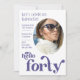Invitation d'anniversaire "Hello Quarty" avec photo et texte pourpre poussiéreux.
