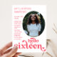 "Hello Sixteen" Invitation d'anniversaire avec photo et texte rose corail.