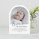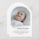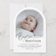 Une Invitation Baptême moderne et minimale avec une photo voûtée et le mot "Baptême" dans une police de style calligraphie. Veuillez noter que vous ne pouvez pas modifier le mot "Baptême" mais vous pouvez modifier tous les autres textes dans cette conception. Vous pouvez modifier la couleur ou la supprimer et la remplacer par une nouvelle zone de texte si vous le souhaitez.