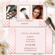 Une carte de visite moderne avec 3 photos de votre choix encadrée par un élégant design rose vif avec des pois et une doublure dorée rose. Un beau carte de visite pour esthéticienne, salon de clous ou maquilleur.
