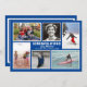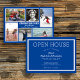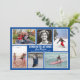Faire-part de remise de diplômes en photo bleu de la Marine et invitation à la maison ouverte. Cartes plates recto verso avec six endroits pour partager des photos du garçon ou de la fille grad. Les photos sont verticales, horizontales et carrés. Des photos de sa vie peuvent montrer des hobbies, des talents, des amis et des frères et soeurs préférés. Le centre tient le texte "félicitations" avec son nom, sa classe et son nom d'école. Chaque photo est encadrée en blanc. Au verso, customisez les lignes de texte pour la maison ouverte, ou votre choix de célébration. La couleur bleue de l'arrière - plan peut être changée dans la zone "personnaliser". Assurez-vous de le modifier pour les deux côtés de la carte.
