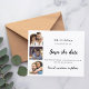 Une carte Enregistrer la date pour votre mariage. Le texte : Save the Date est écrit avec un grand script de style à la main tendance. Personnalisez et ajoutez 3 photos. Vous pouvez ajouter votre jeu de couleurs dans l'outil de conception. 1 feuille = 1 Enregistrer la date d'impression arête à arête.