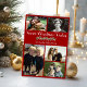 Carte photo de famille de Noël à thème tropical avec un endroit pour cinq photos. Couleurs rouges et vertes traditionnelles avec des voeux de Noël chauds, ou changez-le, avec l'étoile de mer et le design saint.