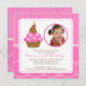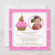 Commencez votre fête à droite avec notre mignonne Invitation Photo Anniversaire avec un cupcake sucré avec la bougie numéro 4 en rose et marron avec un arrière - plan pois rose. Personnalisez simplement vos informations et vous êtes tous prêts à partir ! Des articles correspondants, dont des timbres-poste d'anniversaire, des autocollants de faveur, des cartes de remerciements et des autocollants de remerciement sont également disponibles dans notre boutique. ©JD Digi Designs