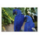 Une photo de deux perroquets bleus assis sur une branche dans la forêt d'arbres. Aussi disponible en poster !