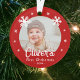 Premier Noël des flocons de neige rouges Ornement photo de bébé. Joli flocons blancs sur un arrière - plan rouge. Nom du bébé dans un script tendance. Personnalisez l'ornement avec la photo, le nom et l'année de votre bébé. Un joli souvenir de Noël.