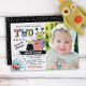 Photo Un Ancien Monstre Invitation Anniversaire - Pas de tour ou de friandises ici. Notre invitation à l'anniversaire de monstre "terrifiant" est la vraie affaire. Avec quelques petits amis éffrayants colorés prêts à faire la fête. Spécialement conçu pour son premier anniversaire. Votre petite créature sera à la recherche d'un monstre d'une fête avec cette invitation terriblement créative.