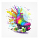 rainbow roller skate bursts with color and graffiti-style splashes against a geometric backdrop, blending retro edges with bold streetwear flair.