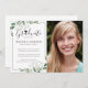 Invitations amis et famille à célébrer avec la grad avec cette invitation de graduation moderne avec l'aquarelle eucalyptus feuilles. La photographie est à des fins d'illustration et peut être changée en une de vos propres.