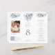 REMARQUE IMPORTANTE : Ce triplé est fourni à plat, SANS présélection. Tu vas le plier toi-même. Pour vous aider à plier avec précision, des directives sont imprimées sur le dos pour les trois panneaux, plus un panneau extra fin sur le côté droit pour que vous appliquiez la colle pour coller le triple ensemble une fois que vous l'avez plié. Blue Floral Photo QR Trifold Mariage Menu Table No. Ce do-it-yourself tripli pratique combine votre numéro de table, menu et partager la section Amour avec un code QR pour que vos invités puissent scanner et télécharger leurs photos sur le site Web de votre choix. Les mots "Table" et "Bienvenue" sont dans un script stylé. Personnalisez facilement le reste du texte au besoin et remplacez l'exemple d'image par le vôtre. Changez l'exemple d'URL du code QR à celui de votre propre URL et votre code QR sera automatiquement généré pour remplacer l'exemple de code.
