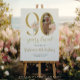 Élégante Affiche de bienvenue du 90e anniversaire avec photo | Floral & Gold Accents Bienvenue aux invités à votre fête d'étape avec ce magnifique panneau d'accueil de 90e anniversaire, avec des flores délicates et d'élégants accents d'or. Conçu pour mettre en valeur votre photo personnalisée, ce panneau ajoute une touche chaleureuse et personnelle à votre entrée de l'événement. Que vous soyez l'hôte d'une fête de jardin, d'un brunch ou d'une soirée chic, ce panneau personnalisable donne le ton parfait. Modifiez le texte pour inclure votre nom et votre date de fête, sans effort et uniquement le vôtre.