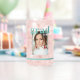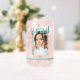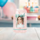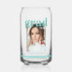 Photo Graduation Party Elegant Modern Script Can Glass Beer Tumbler feature your favorite photo with the simple turquoise text "Grad (year)" and your name and personalized graduation details on the front. Perfect for the grad as a graduation gift or graduation party decor. Created by ©Evco Studio www.zazzle.com/store/evcostudio