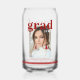 Photo Graduation Party Élégant Script moderne Can Glass Beer Tumbler présente votre photo préférée avec le texte simple bordeaux "Grad (année)" et votre nom et les détails de graduation personnalisés sur le devant. Idéal pour les grands comme cadeau de remise de diplômes ou décoration de fête de remise de diplômes. Créé par ©Evco Studio www.zazzle.com/store/evcostudio