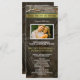 Photo The Hunt is Over Camo Wedding Programs - présente un chamo de chasse rustique imprimé à la campagne ou un arrière - plan forestier avec la mention "The Hunt is Over" en haut. L'arrière contient le même arrière - plan de camouflage. Vous pouvez changer la photo du couple de démo en l'une des vôtres.