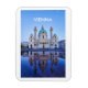 Photo Magnet design avec Karlskirche à Vienne Autriche au coucher du soleil avec réflexion et lune brillante dans le ciel violet, église St Charles