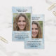 Ajoutez un nom, un message et une photo pour créer une belle carte de rappel photo. Idéal pour les portefeuilles, les encarts de cartes, les funérailles, les réveils, la célébration de la vie et plus encore.