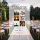 Créez votre propre panneau d'accueil mariage personnalisé avec votre collage photo personnalisé, typographie de script de calligraphie élégante et design minimaliste moderne.