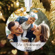 Personnalisez votre arbre de vacances ou décor de maison avec un magnifique ornement acrylique moderne à thème familial, avec votre nom de famille et l'année avec vos photos de famille sur le devant et le dos. Ce design personnalisé et unique présente un style de police de style calligraphie élégant en couleur bronze sur un dégradé blanc chic complétant la photo de votre famille. Le ménage parfait ajout à votre décor de vacances.