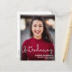 Description du produit : "Célébrez l'accomplissement inspirant de votre diplômé en soins infirmiers avec notre "Photo personnalisée de présentation de la Faire-part infirmière diplômée". Ce faire-part moderne et élégant est le moyen idéal de partager les nouvelles passionnantes de l'entrée de votre diplômé dans le noble domaine des soins infirmiers. Cette carte postale permet un haut degré de personnalisation, ce qui en fait une faire-part unique et sincère. Présentez la photo de votre diplômé de façon importante, en y ajoutant son nom, son année de classe et son nom d'école. Le dos de la carte postale offre un espace pour un accueil spécial, votre adresse de retour, les détails du programme scolaire (comme le baccalauréat, les distinctions honorifiques, etc.) et d'autres informations pertinentes. Ce niveau de personnalisation garantit que chaque faire-part est aussi spécial que la réussite du diplômé. La typographie de cette carte postale faire-part est à la fois moderne et élégante, avec une police de script qui ajoute une touche chic au design. Le mot "Introduce" est présenté de manière élégante et contemporaine, saisissant parfaitement la signification de l'obtention du diplôme. Partager cette faire-part avec sa famille et ses amis ne consiste pas seulement à les informer de la remise des diplômes, mais à partager un moment de fierté et d’excitation. Cette carte postale est plus qu'une simple notification; c'est un souvenir qui honore le travail acharné et le dévouement de votre diplômé en soins infirmiers. Célébrez cette étape importante avec notre "Photo personnalisée introduisant une infirmière Faire-part de grade Postcard". C’est une façon élégante et significative d’annoncer la remarquable réalisation de votre nouveau diplômé en R.N. au monde."