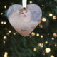 Faites un ornement de Noël personnalisé en forme de coeur pour honorer un animal de compagnie aimé. Remplacez la photo du chat par une photo de votre animal de compagnie. Changez le nom au bas de la photo pour le nom de votre animal de compagnie. La citation, "Pour toujours dans mon coeur" est écrite en écriture bleue au dos de la photo. L'arrière de l'ornement est rempli d'estampes bleues. Les années de la vie de votre animal de compagnie sont écrites sous la citation.