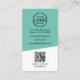 On the back, the top portion carries the same teal or turquoise blue background, with the rest remaining white for a nice contrast. Your contact information, scannable QR code, and social media icons are arranged in a clear layout, using black fonts and icons to keep things crisp and easy to scan.