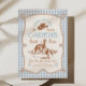Saddle up for a sweet celebration! This gingham cowboy birthday invite features western flair with a charming twist—easy to edit, download, and print or share digitally.