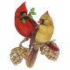 Les oiseaux cardinaux très détaillés se reposant sur une branche de pin avec des cônes et rouge Cardinal a la brindille sainte.