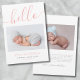 Une faire-part de naissance simple et minimaliste, parfaite pour accueillir votre petite fille dans le monde. En haut, un "bonjour" rose chaleureux est élégamment écrit dans un mélange de typographie manuscrite rose et gris, donnant un ton doux et accueillant. Le design comporte des espaces pour les photos de nouveau-nés à la fois sur le devant et sur le dos, ce qui permet de rester concentré sur votre précieuse nouvelle arrivée. Vous pouvez également ajouter le nom, la date et l'heure de naissance et le poids du bébé, ou échanger ces détails pour quelque chose d'autre si vous le souhaitez. Le dos offre un espace pour une note de remerciement personnelle ou des détails supplémentaires sur votre bébé ou votre grossesse. Ce faire-part est disponible sous forme de carte d'impression ou de téléchargement numérique, ce qui vous permet de partager facilement votre joie avec vos proches, que ce soit par la poste ou par voie électronique. Les couleurs de police sont personnalisables, vous pouvez donc les modifier en fonction de votre style. Photo Nouveau-né Simple Baby Girl Carte Faire-part de naissance. Disponible sous forme de faire-part imprimé ou de faire-part numérique téléchargeable que vous pouvez envoyer par e-mail ou avoir imprimé localement !