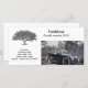 Invitation personnalisée à votre réunion de famille. Le côté gauche de la carte montre la propagation du chêne (arbre de famille) au-dessus de l'adresse. Sur le côté droit, on voit des gens qui roulent dans une voiture à l'ancienne. Les images peuvent être remplacées par un clic sur "customiser plus loin"