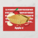 Postcard mit einer lächelnden, nahezu vollständigen Apple Pie Cartoon Illustration. Die Zahlen für Pi sind für mehrere Dezimalstellen sichtbar. Dieses "Apple-Konzept" soll den Spaß am Kochen und Kalkulieren verbinden. Es macht Spaß und es ist nervös. Zwei Dinge, die sich wunderbar miteinander verbinden.