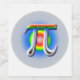 Weinflaschen-Etiketten mit meinem einzigartigen Design eines Chrom-Look Pi-Symbols auf einem mehrfarbigen Kreis.