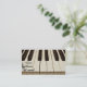 Piano-Tasten mit einer schwarzen Musiknote und Musiknoten verblasst in den Tasten Visitenkarte können Sie hier personalisieren/anpassen, einfach Ihren Namen und andere Informationen hinzufügen.