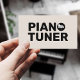 A simple business card with a beige background for piano tuner or technician. It also could be used for piano teacher or music lessons. The back comes with fully customizable contact information.