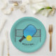Pickle Ball Pickleball Design Paper Plate mit anpassbarem Text und Hintergrundfarbe.